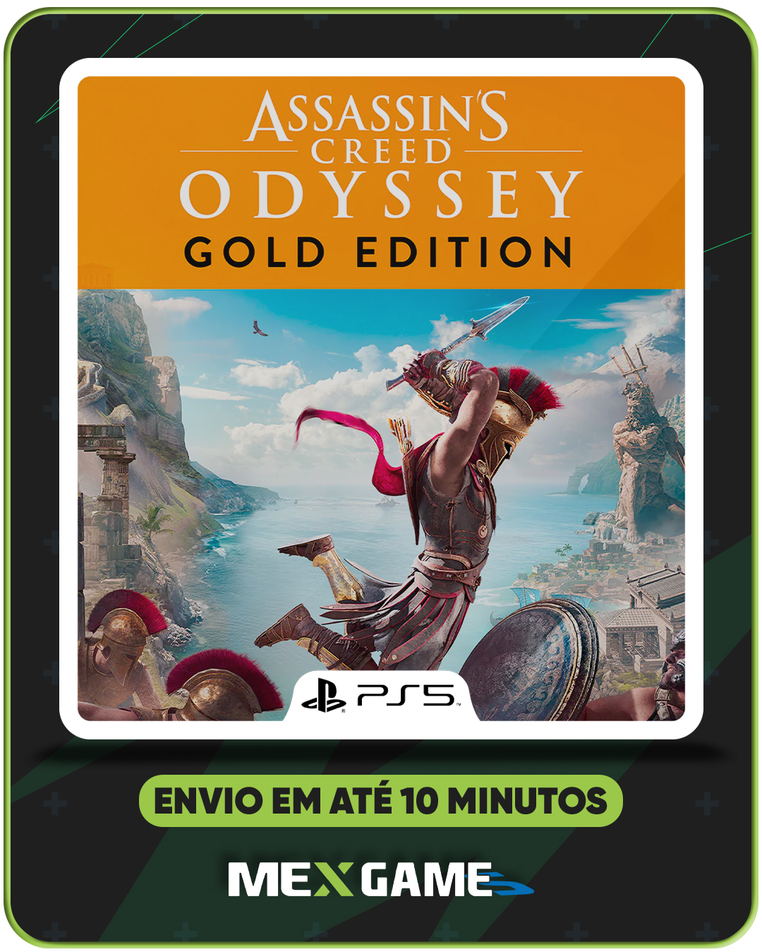 "Assassin's Creed Odyssey Gold Edition" é uma edição especial do jogo de ação e RPG desenvolvido pela Ubisoft. Ambientado na Grécia Antiga durante a Guerra do Peloponeso, os jogadores assumem o papel de Alexios ou Kassandra, mercenários espartanos em busca de respostas sobre seu passado. A Gold Edition inclui o jogo base, acesso antecipado de três dias antes do lançamento oficial, o Passe de Temporada com duas novas histórias divididas em seis episódios, e "Assassin’s Creed III Remastered" em 4K e HDR.