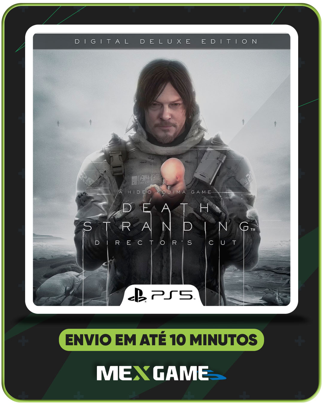 "Death Stranding Digital Deluxe Edition" é uma edição especial do aclamado jogo de ação e aventura desenvolvido por Kojima Productions e publicado pela Sony Interactive Entertainment para PlayStation 5. Situado em um mundo pós-apocalíptico onde a humanidade está à beira da extinção, os jogadores assumem o papel de Sam Porter Bridges, um mensageiro encarregado de reconectar cidades isoladas e reconstruir a sociedade.