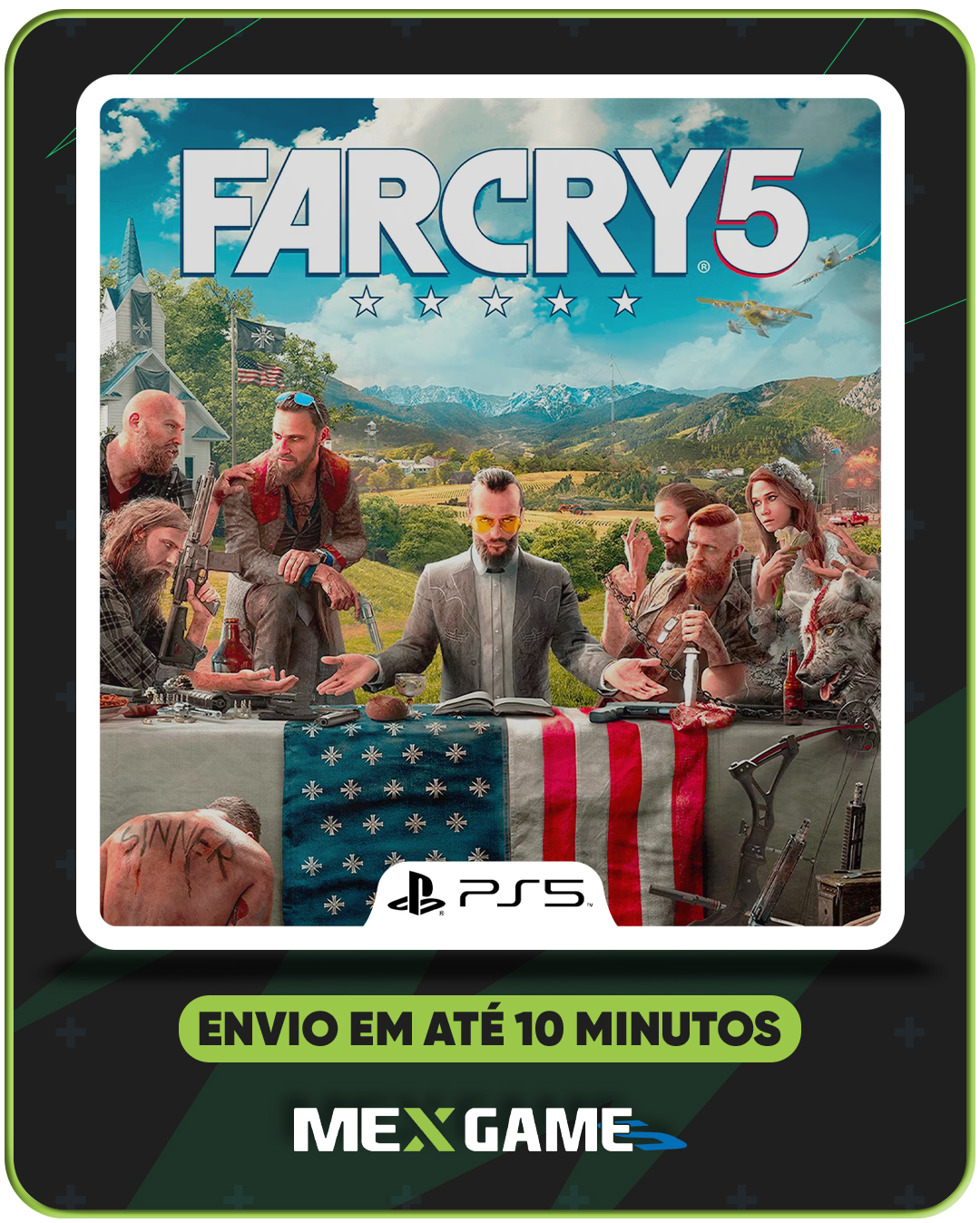 Far Cry 5 é ambientado em uma pequena cidade no estado de Montana, nos Estados Unidos, que foi tomada por um culto apocalíptico chamado "Portadores da Verdade". O jogador assume o papel de um policial que se junta a um grupo de resistência para combater o culto e libertar a população local. O jogo oferece um vasto mundo aberto para explorar, com missões principais e secundárias, além de combates intensos e furtivos. O sistema de combate é variado, com armas, veículos e até companheiros animais. A narrativa aborda temas de religião, fanatismo e resistência, enquanto o jogador luta para enfrentar o poder de um culto crescente.