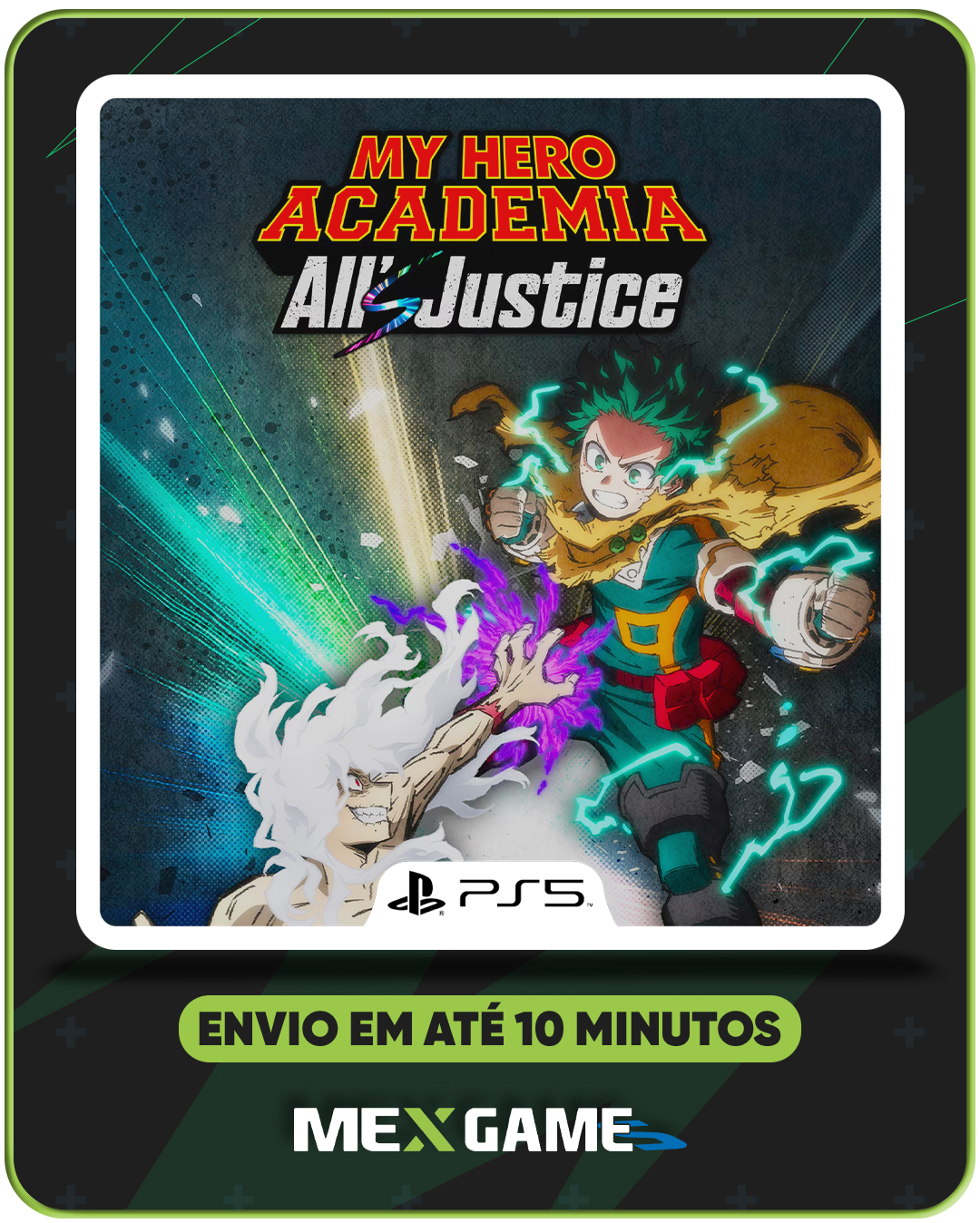 Em My Hero Academia: All’s Justice, o universo dos heróis e vilões chega ao seu auge em batalhas 3x3 repletas de ação. Reviva os momentos finais da saga de Izuku Midoriya, Katsuki Bakugo e seus colegas da U.A. enquanto enfrentam o caos deixado por All For One e seus seguidores. Escolha entre dezenas de personagens icônicos, cada um com seus Quirks e estilos únicos de combate, e monte sua equipe ideal para enfrentar inimigos poderosos em arenas totalmente destrutíveis. Além do modo história cinematográfico, o jogo traz o modo Missão em Equipe, onde você vive o dia a dia de um herói em treinamento, completando desafios, evoluindo habilidades e formando alianças.
