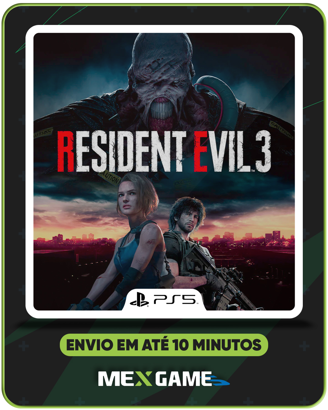 Resident Evil 3 Remake é uma versão modernizada do clássico jogo de terror e sobrevivência, lançado originalmente em 1999. O jogo segue Jill Valentine, uma das últimas sobreviventes de Racoon City, enquanto ela tenta escapar de uma cidade devastada por um surto de zumbis e enfrentando o implacável Nemesis, um monstro criado para caçar e eliminar qualquer um que interfira nos planos da Umbrella Corporation. Com gráficos atualizados e uma jogabilidade em terceira pessoa, o remake traz combates intensos, resolução de quebra-cabeças e a gestão de recursos escassos, além de uma narrativa envolvente. O jogo também inclui modos extras, como o "The Mercenaries", e uma experiência cinematográfica de ação e terror.