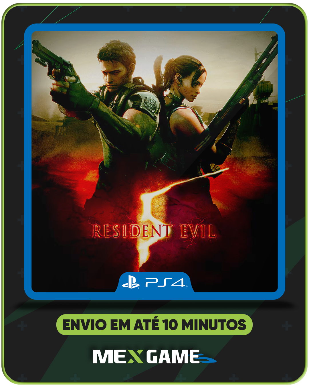 "Resident Evil 5" é um jogo de ação e terror de sobrevivência desenvolvido e publicado pela Capcom. Ambientado na África, os jogadores controlam Chris Redfield e sua parceira Sheva Alomar enquanto investigam uma ameaça bioterrorista que transforma as populações locais em criaturas violentas. O jogo combina elementos de ação intensa com resolução de enigmas, oferecendo tanto modos de jogo solo quanto cooperativo.