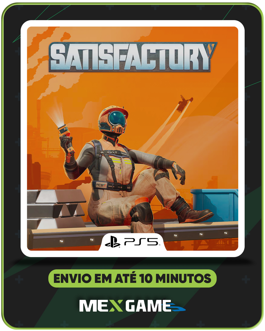 Em Satisfactory, você é enviado a um planeta alienígena como engenheiro da corporação FICSIT, com a missão de explorar, extrair recursos e construir enormes fábricas automatizadas. O mundo é vasto, cheio de biomas únicos, criaturas estranhas e segredos a serem descobertos.