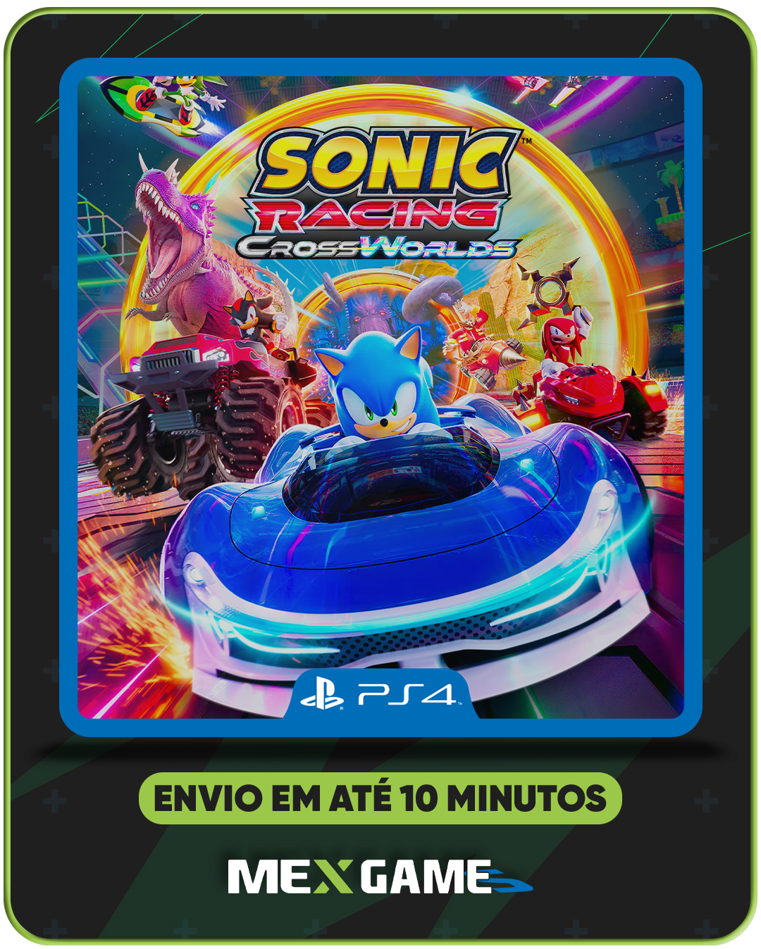 Corra com Sonic e um enorme elenco do universo Sega — e ainda participe de crossovers com personagens como Hatsune Miku, Joker e Ichiban Kasuga — em pistas tridimensionais que se transformam via portais interdimensionais, alternando entre circuitos tradicionais, aéreos e marítimos durante cada volta.