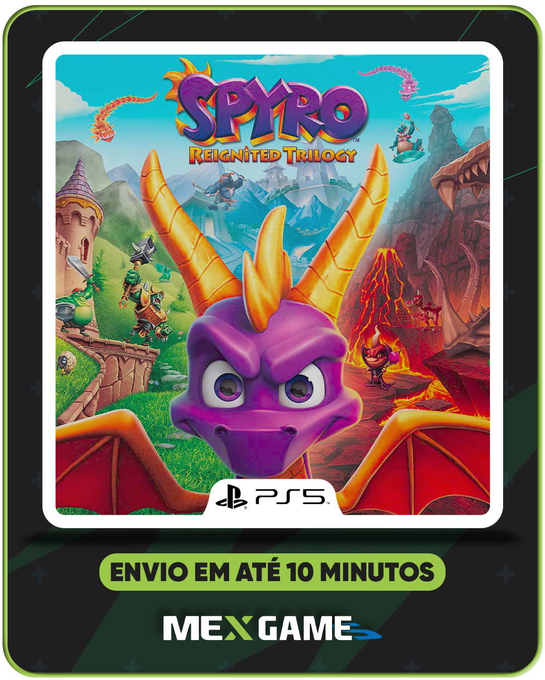 "Spyro Reignited Trilogy" reúne os três clássicos jogos da série Spyro, totalmente remasterizados com gráficos modernos e jogabilidade aprimorada. Acompanhe o jovem dragão Spyro em suas aventuras por mundos coloridos e repletos de desafios, onde ele enfrenta inimigos, resgata amigos e coleta tesouros para salvar seus reinos. Com visual vibrante, controles fluidos e muita diversão, esta trilogia é ideal para fãs nostálgicos e novos jogadores que querem experimentar a magia de Spyro em alta definição.