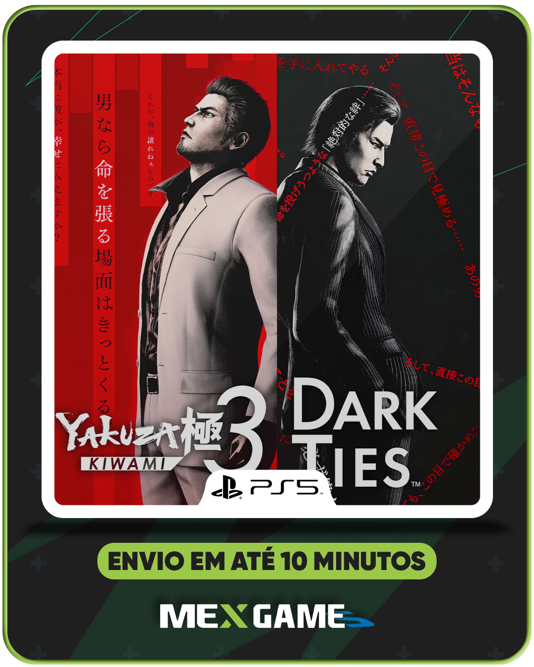 Em Yakuza Kiwami 3 & Dark Ties, Kazuma Kiryu retorna em uma história épica de redenção, honra e violência. Após deixar a vida criminosa para administrar um orfanato em Okinawa, Kiryu é forçado a voltar ao submundo quando uma disputa por terras coloca as crianças sob ameaça. Esta nova versão Kiwami 3 traz gráficos completamente refeitos, novas missões secundárias, combates mais fluidos e dublagem aprimorada.